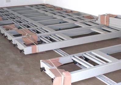 3、立柱安裝(組裝密集架架體)--立柱與導軌的垂直度≤2mm。