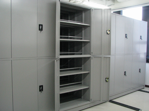 產品規格:900*500*2300mm 產品特點: 基座整體焊接合拼,節與節之間以立柱板封閉,立柱板邊沿的折彎處上開有掛孔,擱板通過掛扣鉤掛扣置于掛孔上;每層擱板一分為二,雙面擱板間距可分別上下調節。雙面擱板間有斜拉加強筋。每節雙面間以分隔棒隔開。 側面板可采用凹凸式護板或三段式護板。架體顏色及搖把樣式由用戶多種選擇。 該樣式密集架適用于要求承重較大庫房,因為密集架架體中間增加了隔板,被稱為“半封閉”或“臺灣式”手動密集架,其承重性能優于前兩種密集架。